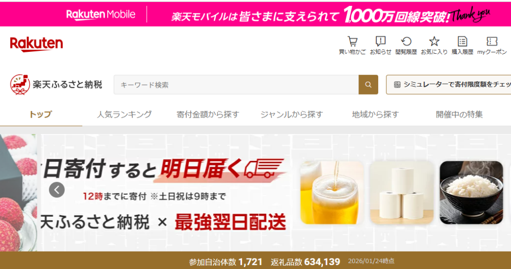 楽天ふるさと納税は、国内最大級のECモールである楽天市場の仕組みを活用した、ふるさと納税ポータルサービスです。最大の特徴は、通常の楽天市場での買い物と同じ感覚で寄付ができ、楽天ポイントが付与・利用できる点にあります。すでに楽天会員として買い物をしている人にとっては、新たな操作を覚える必要がほとんどなく、非常にスムーズに利用できるのが強みです。