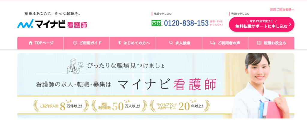 マイナビ看護師は、人材業界大手のマイナビが運営する安心の転職支援サービス。