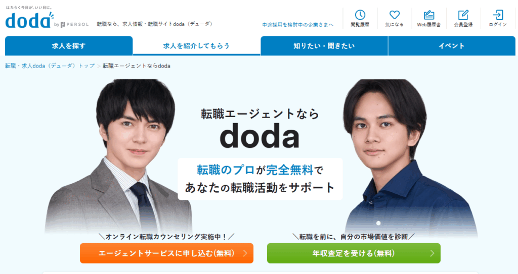 | doda | 無料/0円 | 全業界・全職種 | 随時告知 | 提案スピード・進行管理 |
