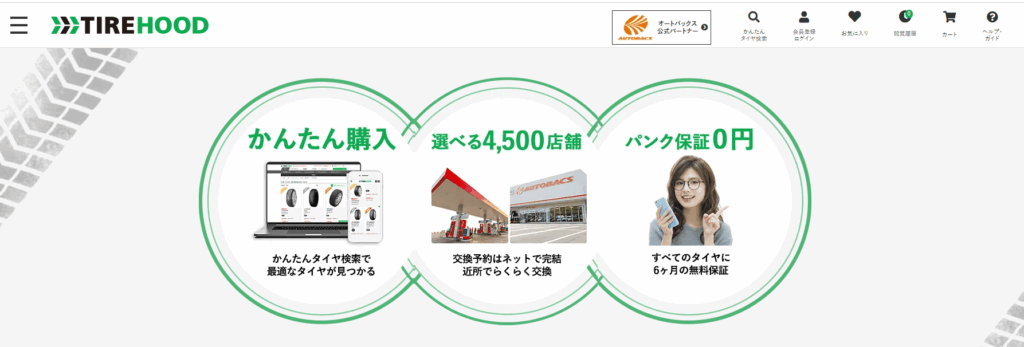 TIREHOODは、オンライン専用のタイヤ購入サービスとして支持が高いサービスです。購入したタイヤは提携店舗へ直送され、ユーザーは予約日時に行くだけ。取付作業も早く、料金が明確で追加費用が発生しにくい点が魅力です。レビューも豊富で選びやすく、価格の透明性が高いのも特徴。ただし、選べるメーカーが限定される場合があり、ブリヂストンのような純正品質を求めるユーザーには向かないケースもあります。
