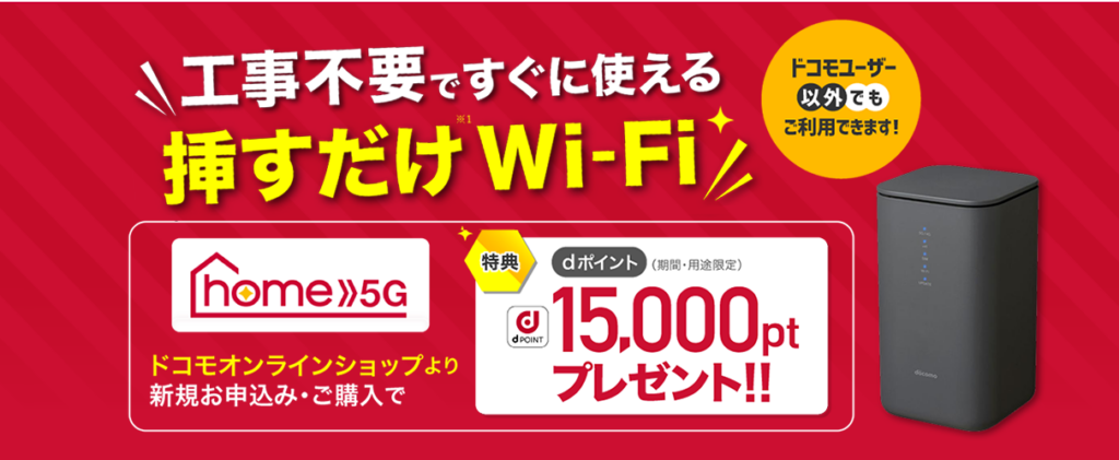 | 4位 | docomo home 5G | 4,950円(税込) | 3,850円 | ドコモ(5G/4G) | 不要 | 端末割引/dポイント | エリア重視。地方でも安心感が高い |