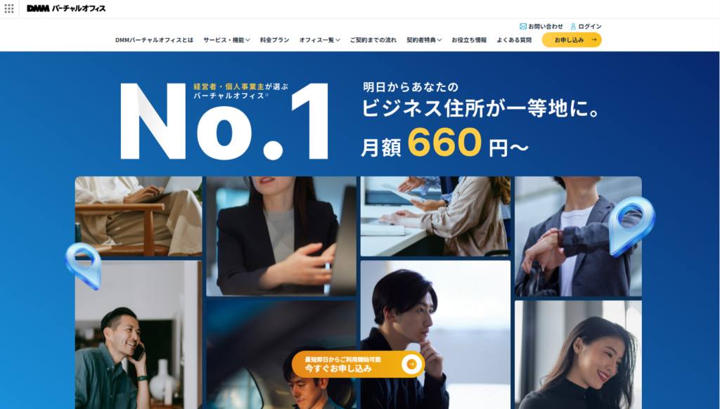 DMMバーチャルオフィスは、動画配信やITサービスで高い知名度を持つDMMグループが提供するバーチャルオフィスサービスです。ブランド力が非常に強く、「名前を知っているから安心」という理由で検討するユーザーも多いのが特徴です。